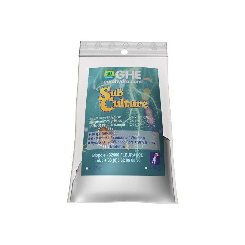 SubCulture je užitečnou směsí mikroorganismů, které chrání kořenovou masu proti patogenním houbám, a to tak, že kořeny obklopí ochrannou bariérou a zabrání růstu, množení, a tak přežití těchto predátorů. General Hydroponics SubCulture přikryje celou kořenovou masu ochranným myceliem, které zabraňuje patogenům, aby získávaly živiny, rostly a přežily.