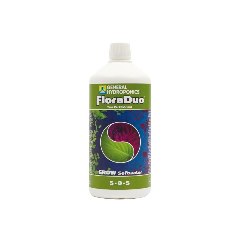 Koncentrovaná dvousložková výživa FloraDuo Grow od General Hydroponics. Podporuje zdravé kořeny, optimální růst a vývoj rostlin. Pro měkkou vodu.