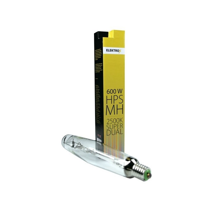 Robustní výbojka Elektrox Super Dual HPS+MH 600W se skutečně kombinovaným světelným spektrem je exkluzivním produktem na trhu umělého osvětlení rostlin. Super Duální osvětlení německé značky Elektrox bylo vyvinuto tak, aby zvládlo dodávat kvalitní světlo v období růstu i květu.
